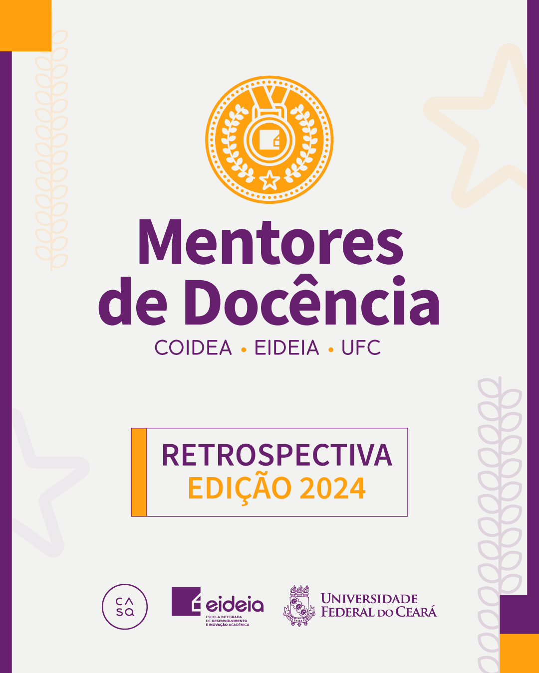 Data da publicação: 23 de setembro de 2025 Categoria: CASa, Eventos, Mentores de DocênciaA Universidade Federal do Ceará, por meio da Escola Integrada de Desenvolvimento e Inovação Acadêmica (EIDEIA) e da Coordenadoria de Inovação e Desenvolvimento Acadêmico (COIDEA), promoveu em 2024 mais uma edição do programa Mentores de Docência.
